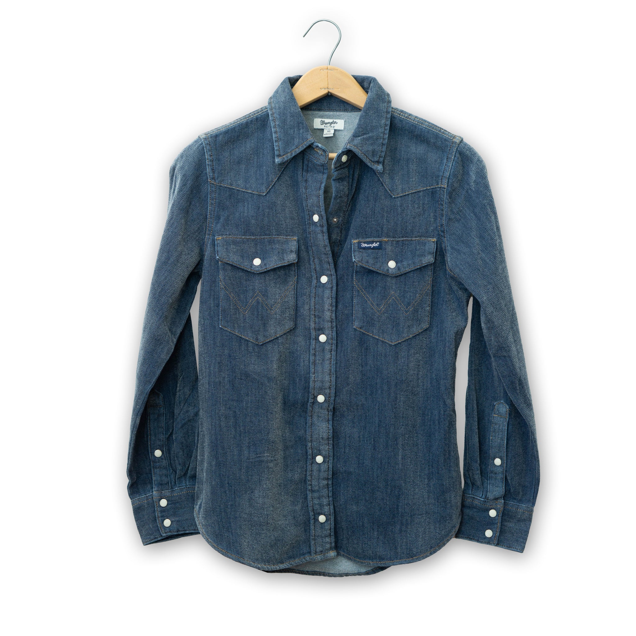 Made from soft chenille fabric, this classic Wrangler snap shirt for women comes with pointed yokes, pearl snaps and two chest pockets with the signature "W" stitching.